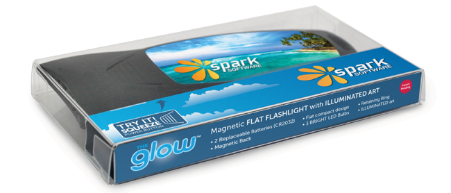 Designed to showcase The Glow Smashlight™. Crystal clear durable plastic protects the light while still allowing it to be seen from all angles. Full color, completely customizable insert. Perfect for handing out or mailing. Drop in your logo and choose one of our stock backgrounds or create your own art for the front and back. Contact Customer Service for custom options and Direct Mail quotes.